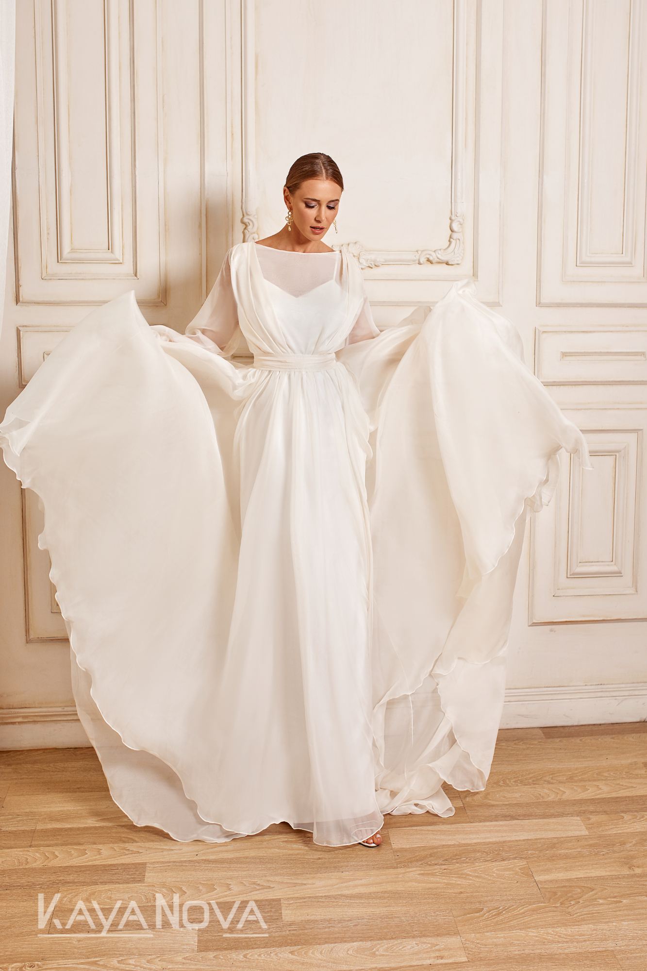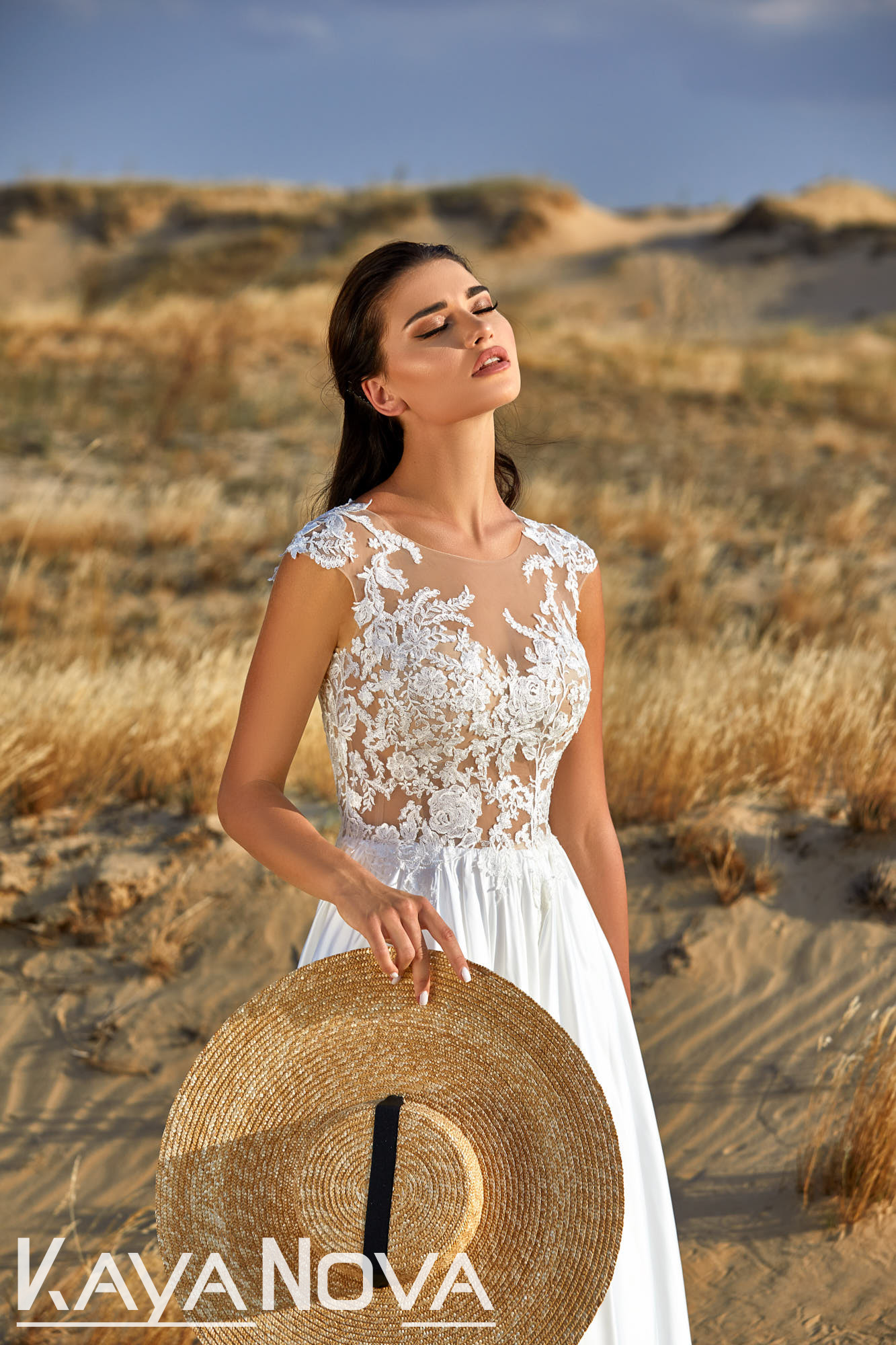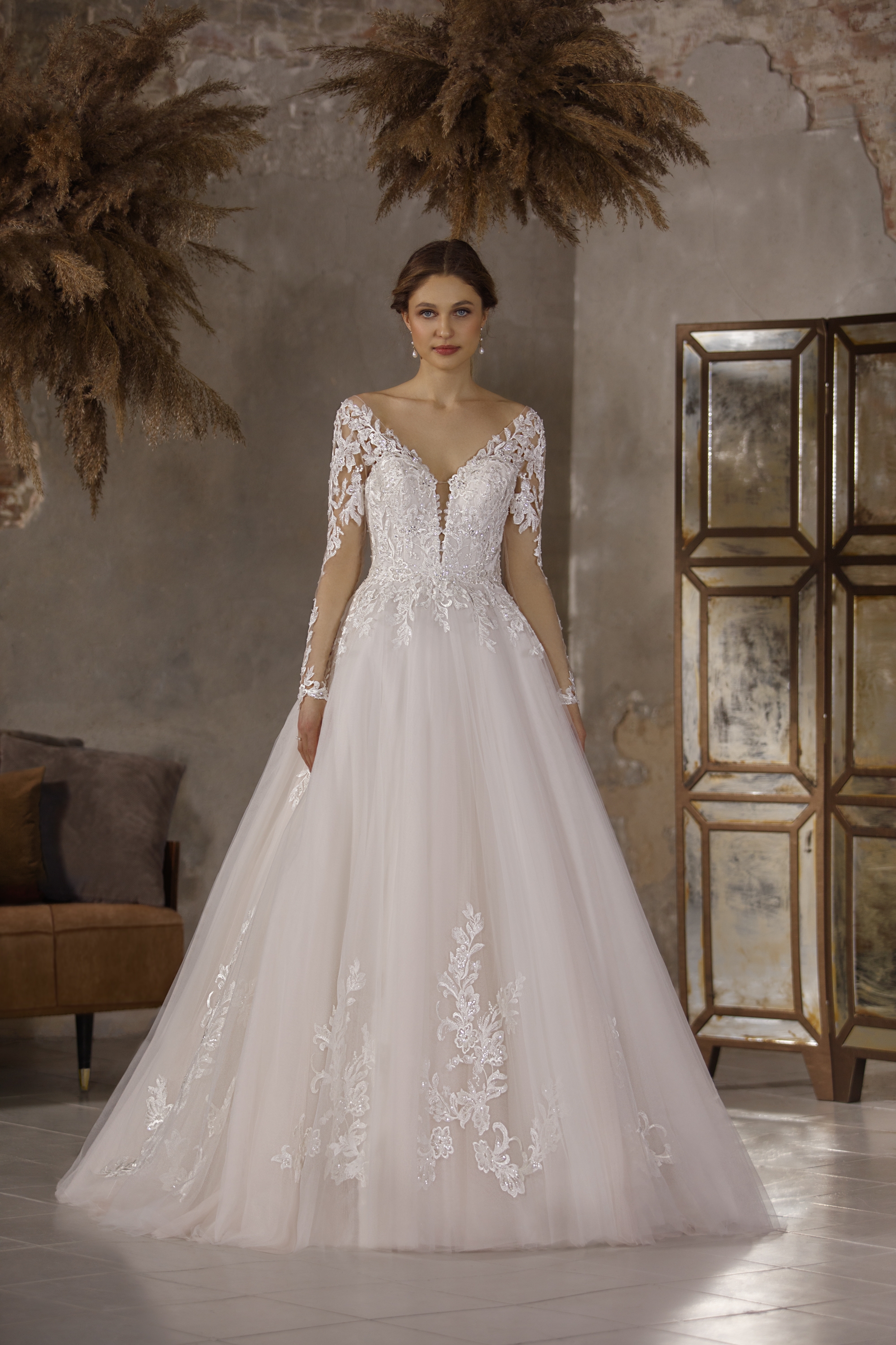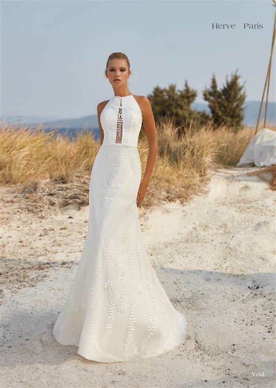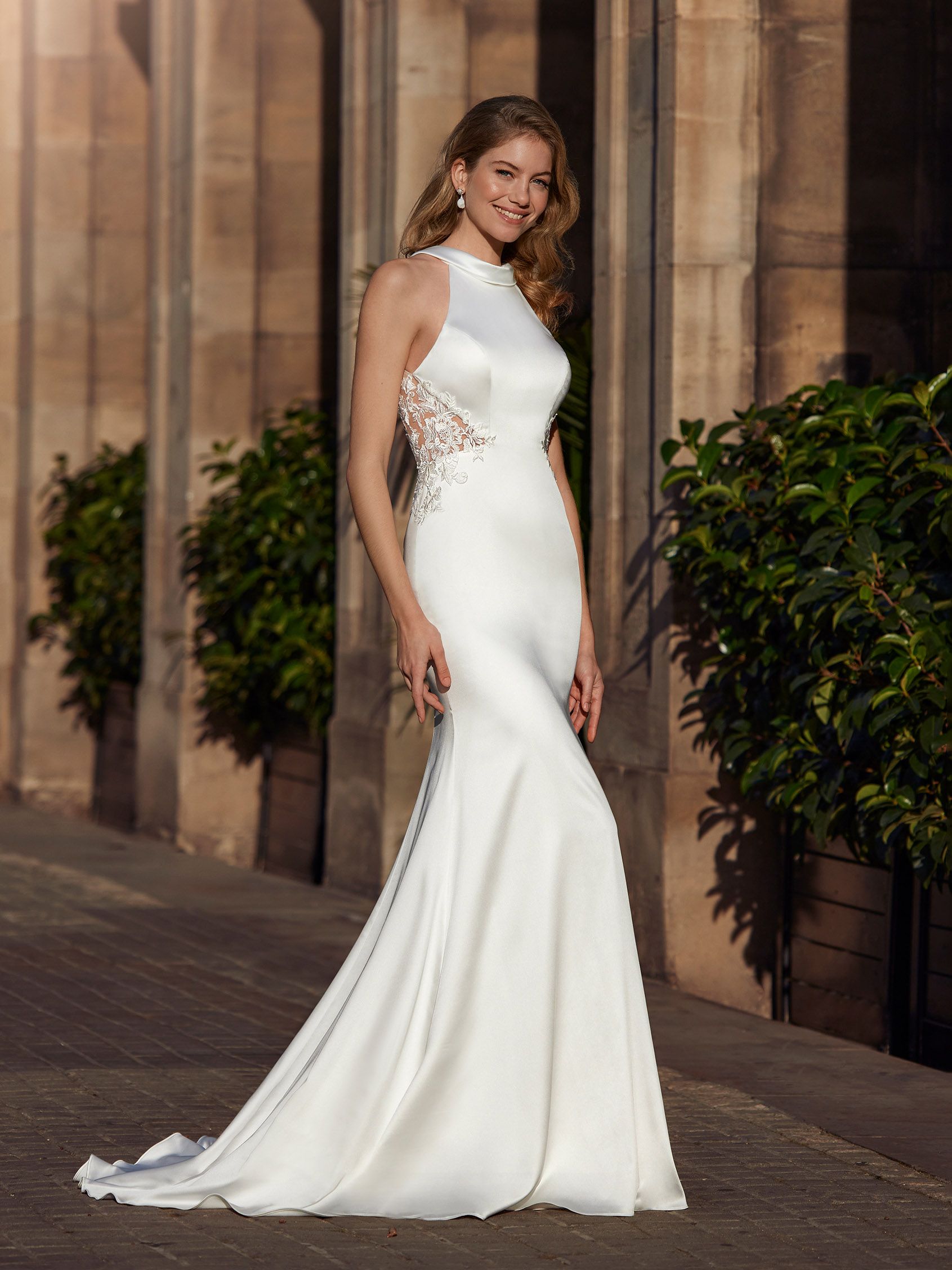 Modsat, er det modest look også på vej frem. Brudekjolens halsudskæring er høj og oftest op til kravebenene. Disse er oftest i fast materiale som satin, crepe, mikado eller georgette og giver et sofistikeret clean look. Beskedent "jomfrueligt" om man vil. Dog er resten af brudekjolen oftest tætsiddende og med sexet ryg - så det udlignes i kjolens endelige detaljer.