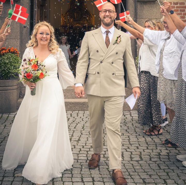 Så har jeg et par billeder til dig fra mit bryllup med Niels den 8/6-24. Endnu en gang 1000 tak for hjælpen med verden flotteste brudekjole til mig."