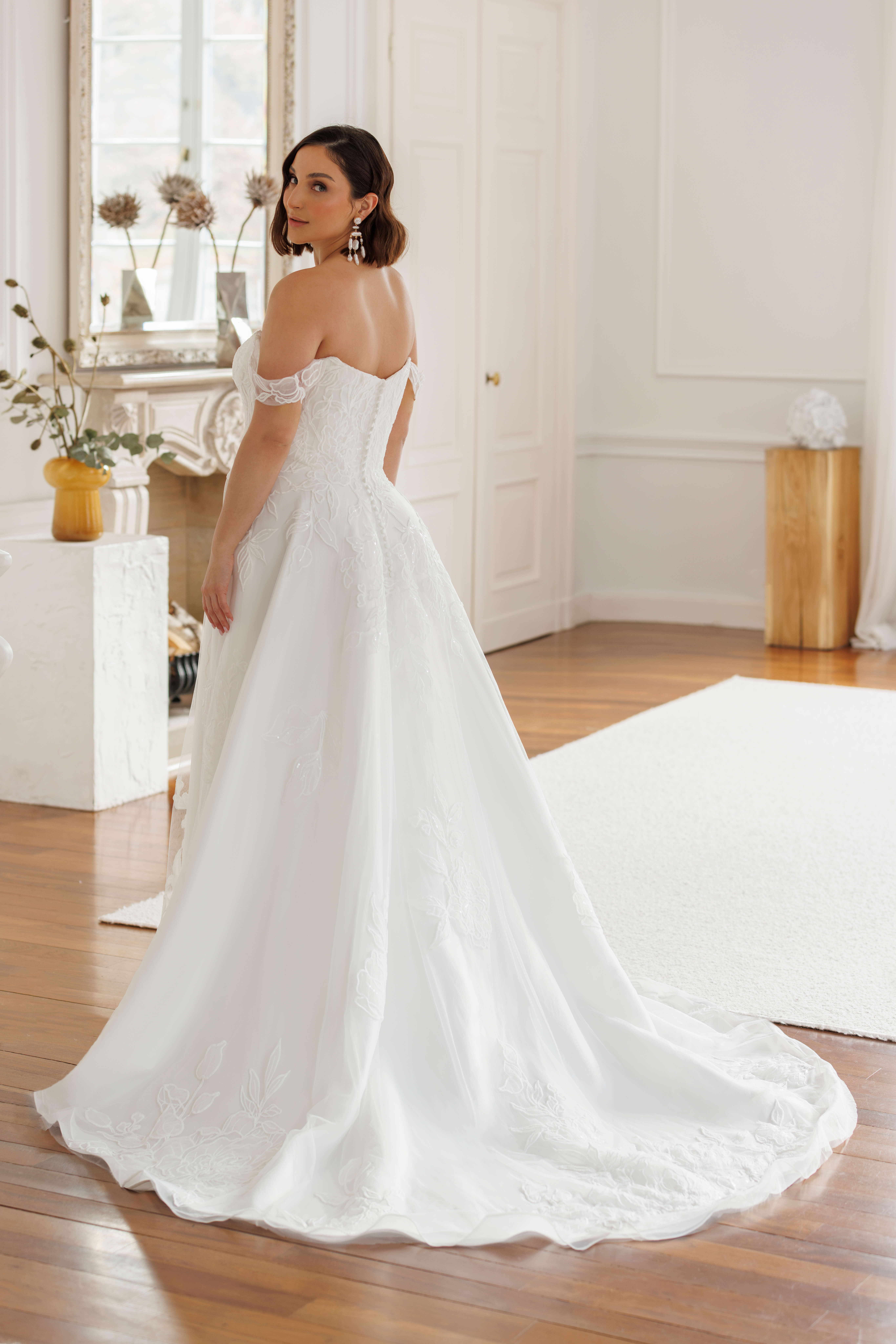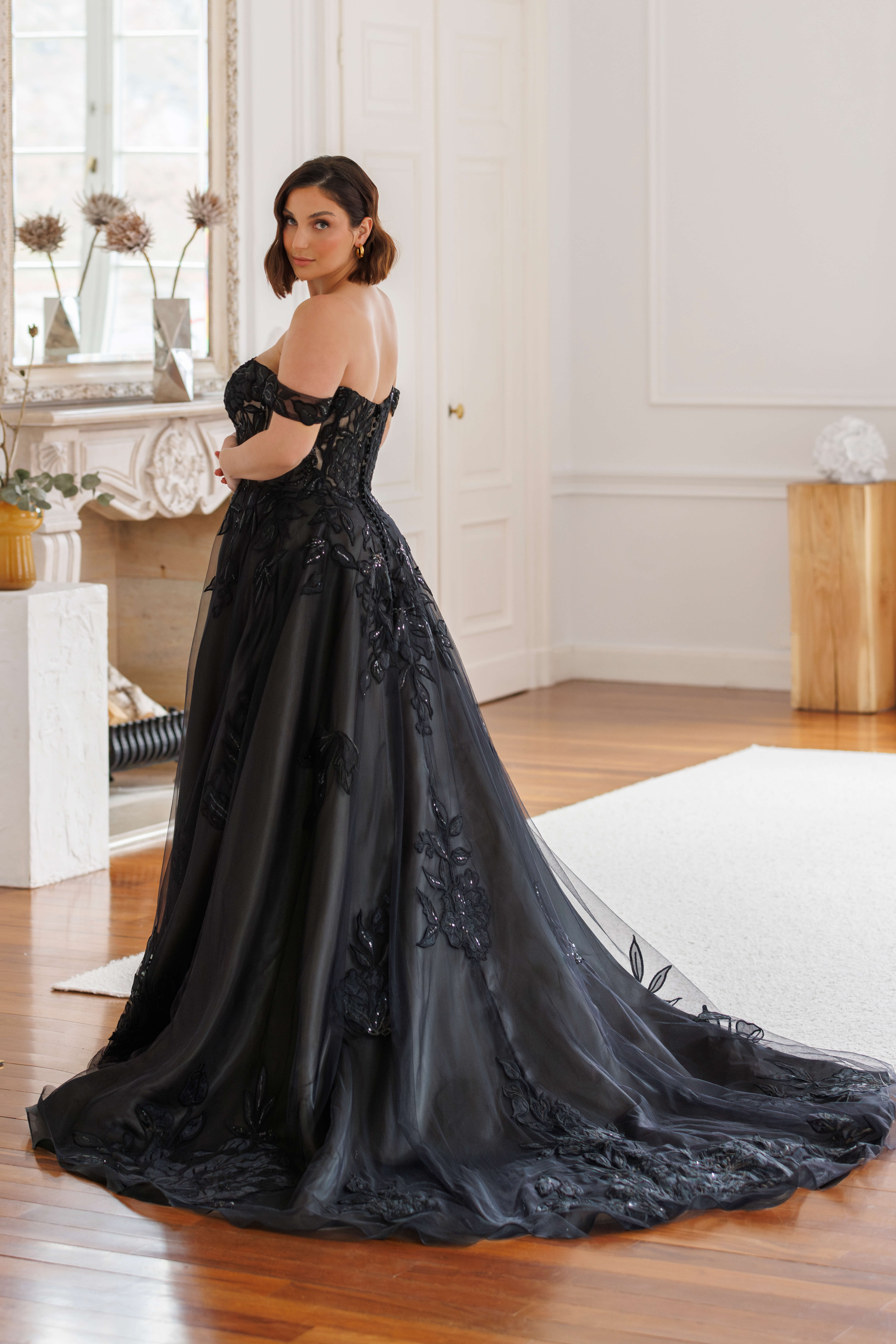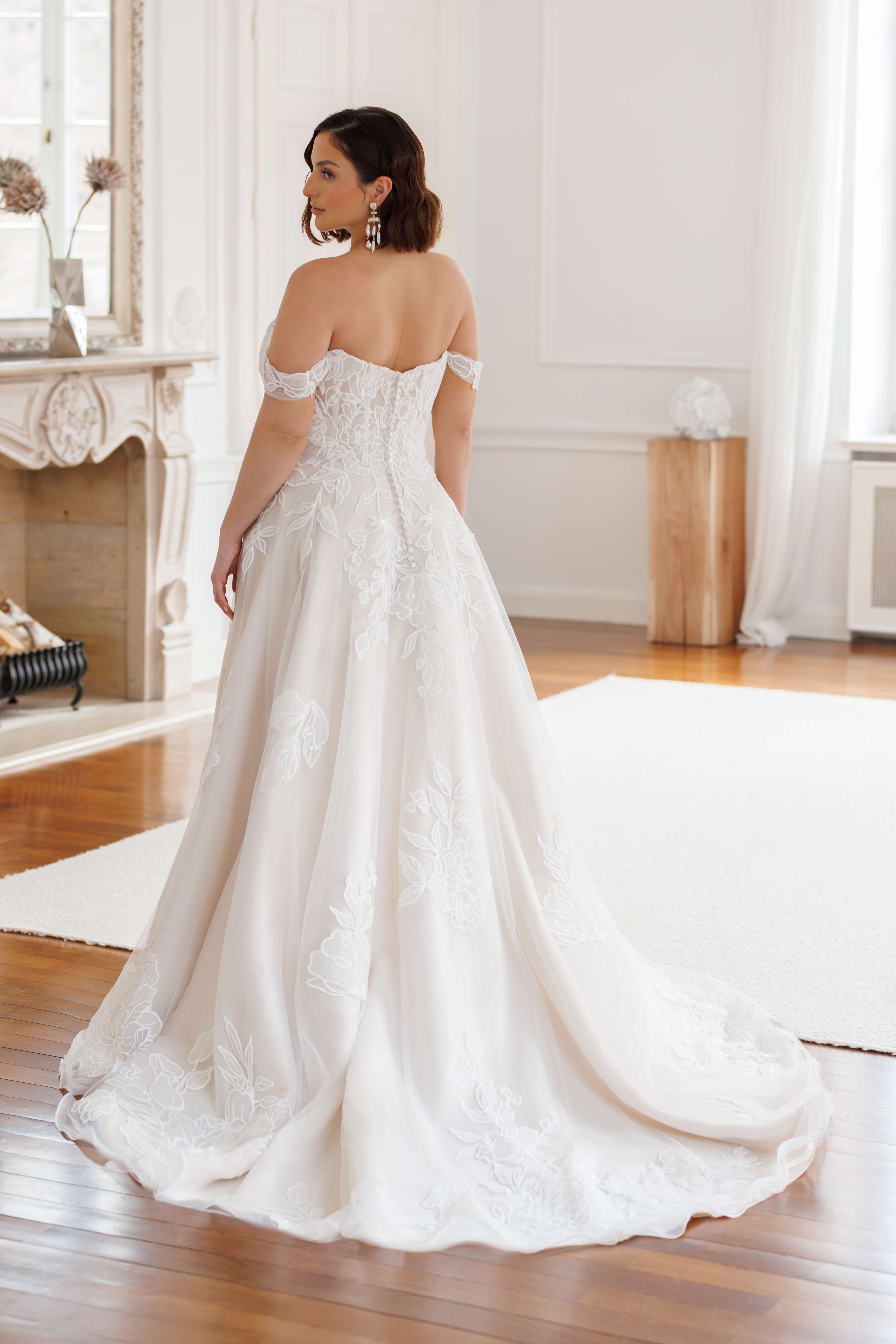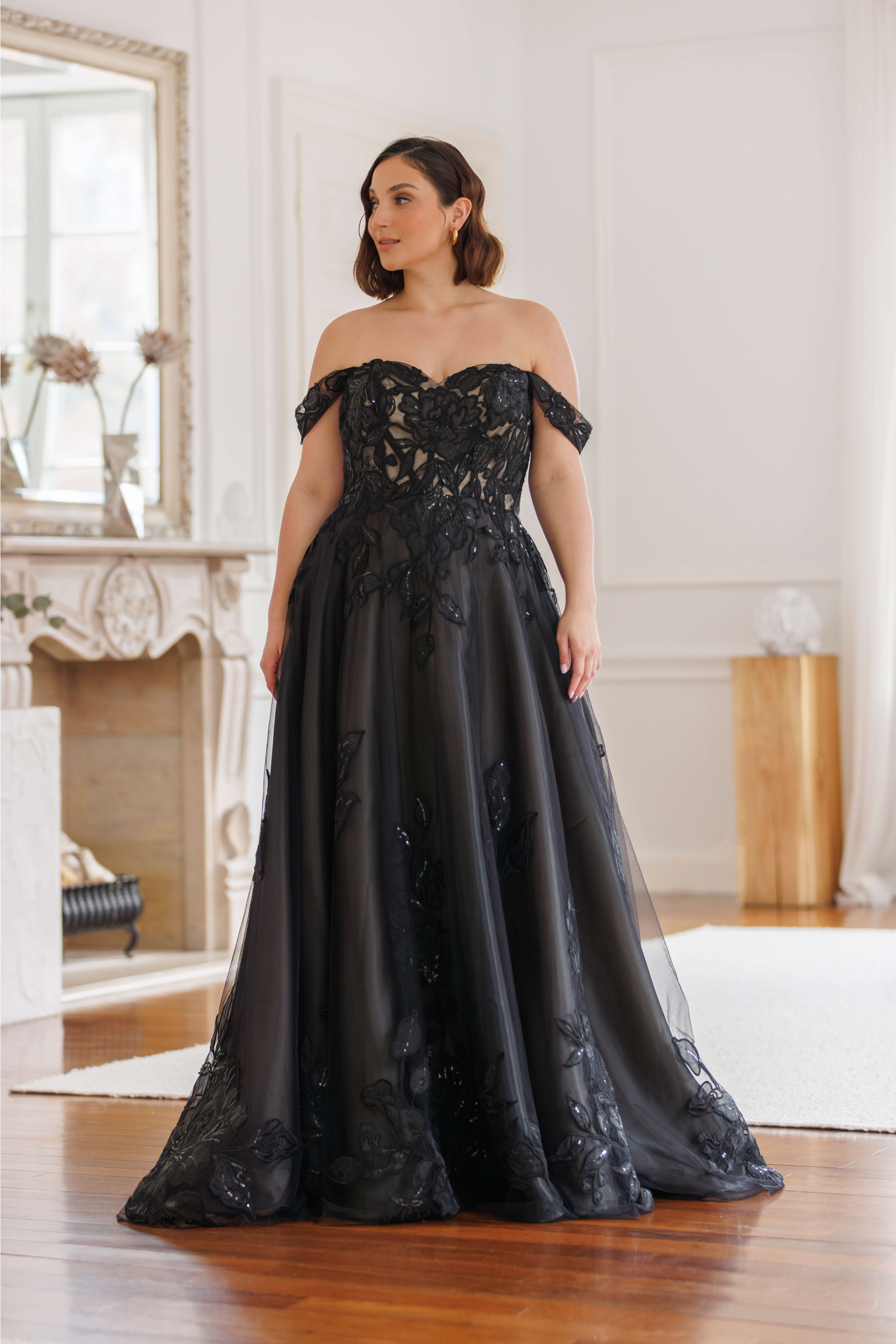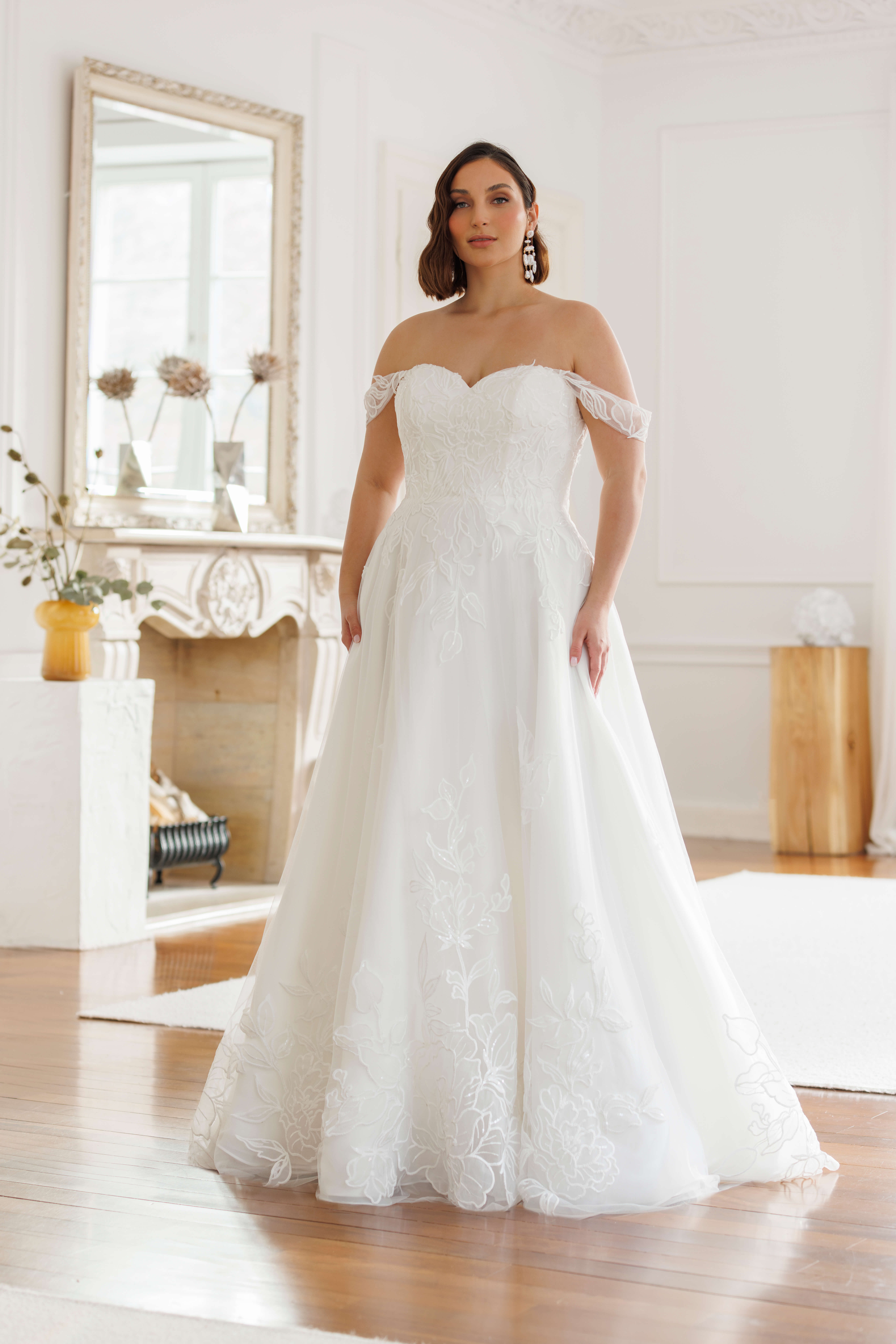 Imponerende plus size bryllupskjole der fåes i ivory, champagne og i sort.